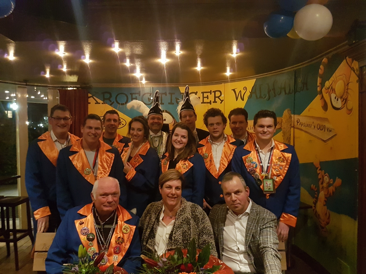 Dit waren echter niet de enige momenten waarbij stil werd gestaan deze avond; 2017 is het jaar waarbij een tweetal jubilea plaats vinden. Daar waar vorig jaar de vereniging 11 jaar bestond, wordt er dit jaar ook alweer voor het 11e jaar op rij gebouwd bij Gait Hekhuis aan de Bosweg 11. Gait, ook wel de “Godfather” van de Kroegtijgers genoemd, is onlosmakelijk met de vereniging verbonden. Voor de meeste Kroegtijgers is de bouwloods aan de Bosweg 11 dan ook als een 2e thuis. Via deze weg willen wij Gait nogmaals bedanken, hopend dat er nog vele mooie jaren zullen volgen! 2017 is ook het jaar dat Jan en Marga Kottink voor het 25e jaar succesvol de eigenaren zijn van Café Zaal Kottink. In 1992 werd het bedrijf over genomen door de toenmalige eigenaar en ze zijn daarmee de 5e generatie op het café. Het bedrijf heeft een flinke groei doorgemaakt wat er mede toe heeft geleid dat er een zaal bij is gebouwd. Al 12 jaar lang is Café Zaal Kottink de vaste residentie van C.V. De Kroegtijgers. De vereniging is zelfs ontstaan aan de stamtafel in café Kottink. Wij willen Jan en Marga nogmaals bedanken en veel succes wensen de komende jaren!